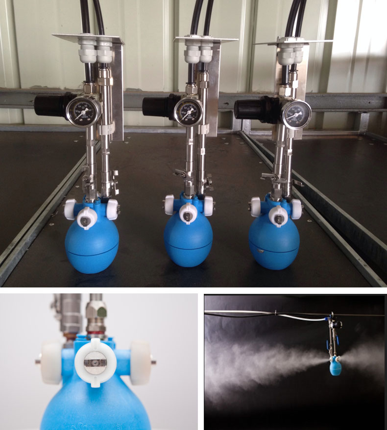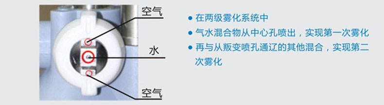 化。根據(jù)需要進(jìn)行調(diào)節(jié)水和氣的壓縮比,獲得最佳的噴霧效果;噴霧顆粒大�。�4.8μm-8.5μm