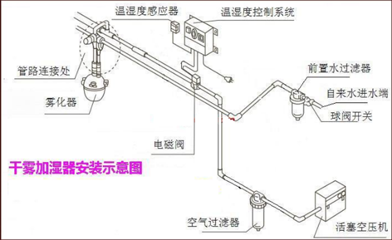 1、汽水混合霧化、霧滴100%汽化,加濕效率高