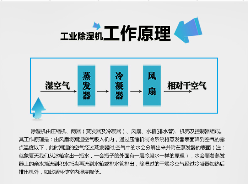濕騰工業(yè)除濕機工作原理概述: