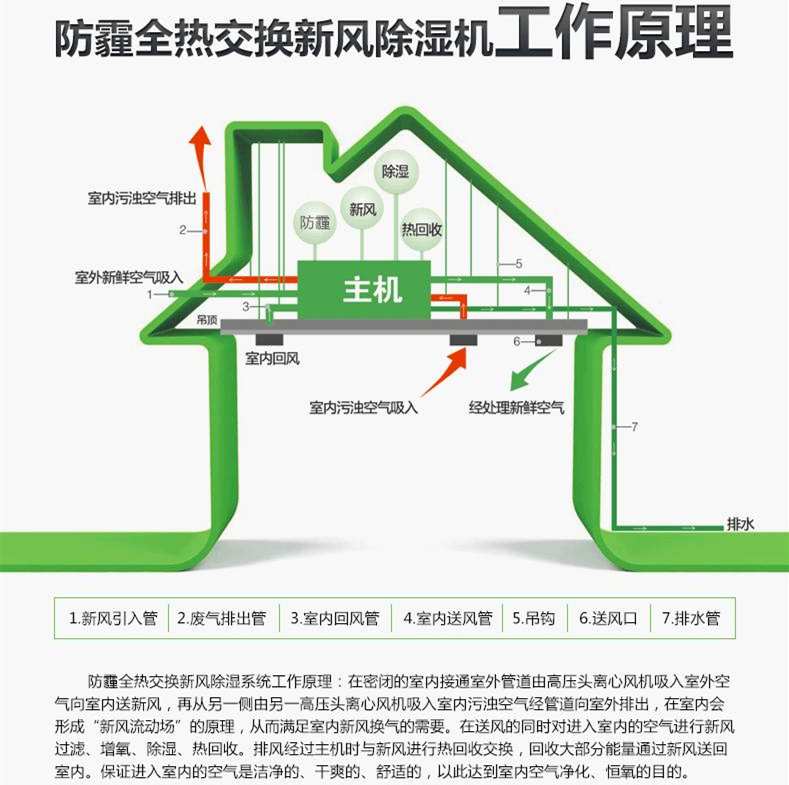 濕騰防霾全熱交換新風(fēng)除濕機(jī),吊裝式安裝,不占用地面空間,安裝方便,也可避免長長的電線絆倒的可能和孩童誤觸電源產(chǎn)生的危險。防霾凈化、強(qiáng)勁除濕,新風(fēng)引入、空氣置換,高效全熱交換芯體,回收空氣中冷熱能量,能量回收效率高,讓您和家人全年365天呼吸健康干爽空氣!